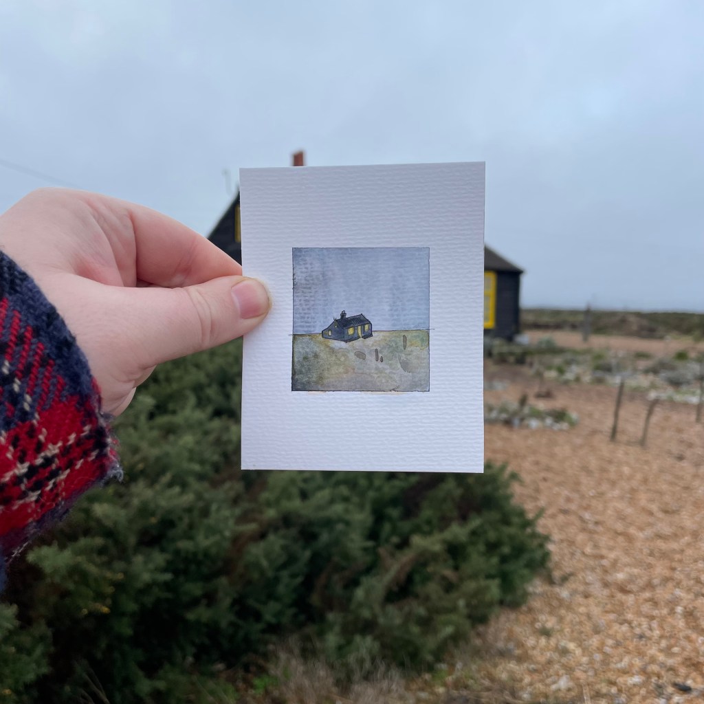 In February of 2024 I was fortunate to be given access to Prospect Cottage for a day, as an artist’s R&D retreat. I am grateful to Creative Folkestone for the opportunity to spend the day in the former home of filmmaker, artist and activist Derek Jarman. I spent the day thinking deeply about how he, and his creativity was affected by the beautiful landscape of Dungeness.