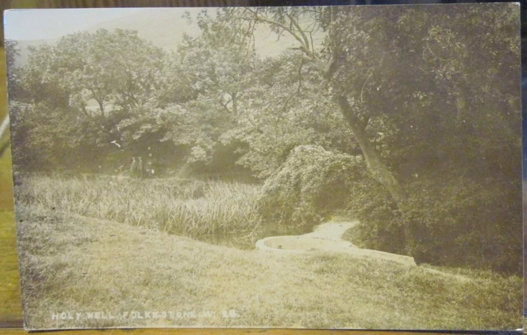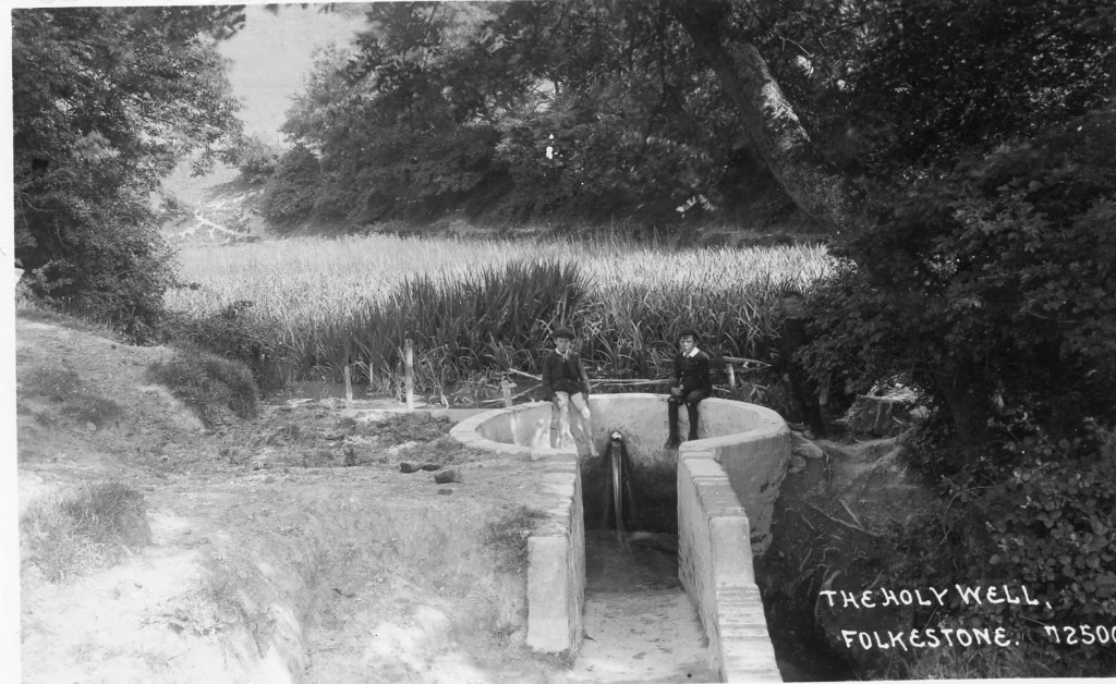 A ‘holy well’ is a water source, often a spring that is considered sacred in religious or cultural traditions. There’s lots of them around the UK, some are Christian in origin as the name suggests, others have older roots and were christianised at some point in their history. The story of each holy well is unique though there are many common features, such as being believed to have healing properties. Folkestone’s holy well is no exception. I couldn’t find any historical sources that directly talked about its restorative powers, but its a detail that has entered the folklore about the site.