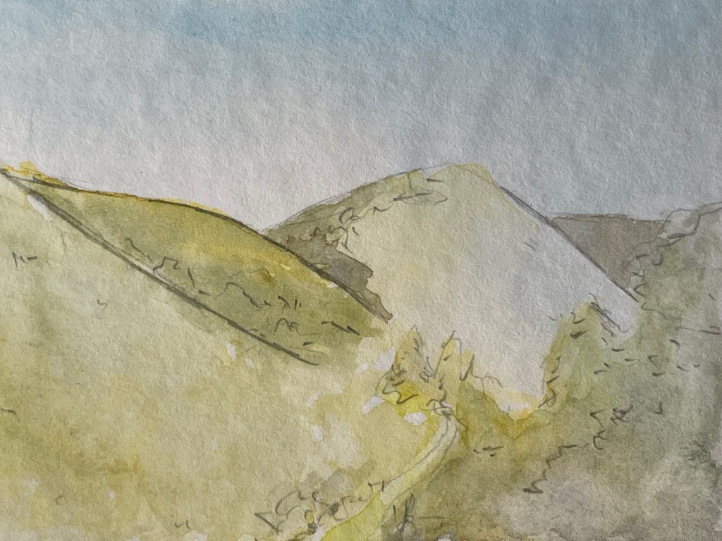I found the well itself amongst overgrown bushes. Part of the cicular concrete structure remains and the water runs clear. The field of reeds above is still there and can be seen from the summit of Sugarloaf hill when you know what you’re looking for.