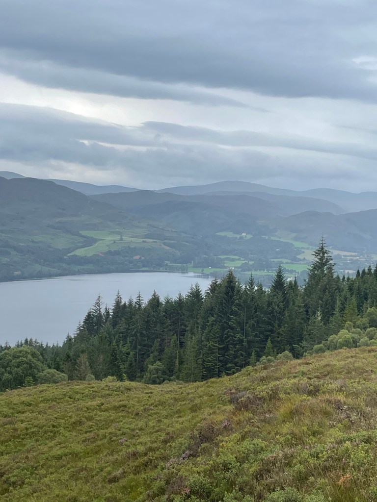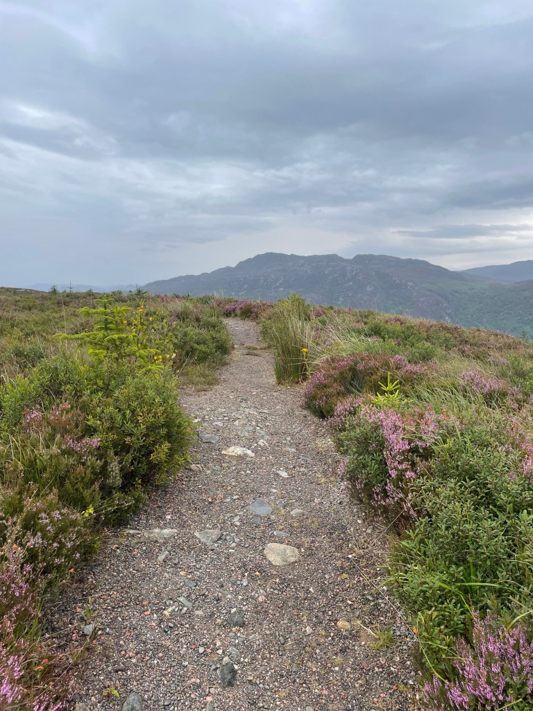 I eventually got past the switchbacks and emerged onto a windswept, heather covered mountainside above the trees. I finally felt like I was in the mountains rather than beneath them. The route wound higher and higher and the views grew ever more stunning as the world continued to fall way further and further. I have no hope of describing just how breathtaking it was, several times as I looked around my heart caught in my chest at the sheer majesty of the surroundings. My description fails but hopefully some photos will do a little better at explaining.